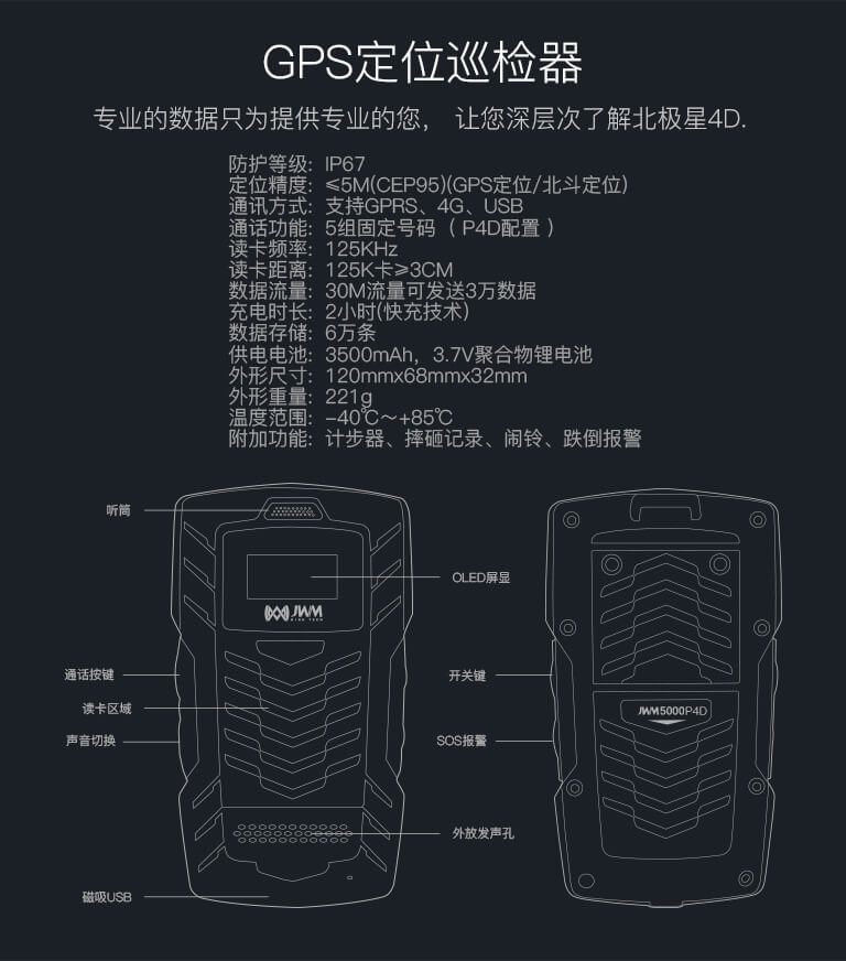 北極星4D 定位型GPS巡檢器磁吸充電/傳輸二合一線材快充電源配置器金萬碼巡更軟件2.0使用指南資料保修卡