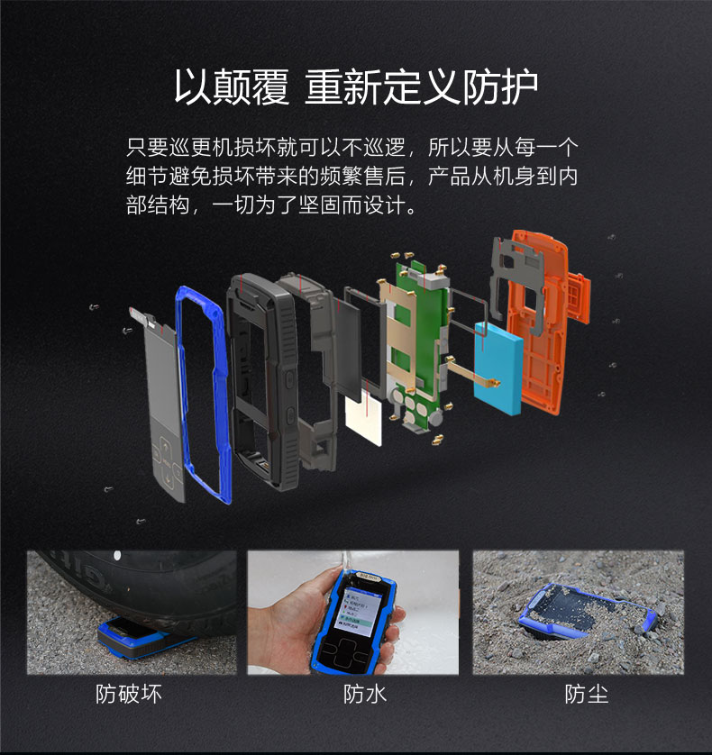 在許多漏檢的記錄中,巡檢人員告訴上級的原因是巡檢器沒電了。為了避免這樣的問題發生,金萬碼GPS巡檢器首創了低電報警功能 ,當巡檢器電量低至15%時(巡檢器顯示電量為紅色時),巡檢器會振動提示使用者及時充電 ,同時巡檢器還會自動向管理中心發送一條報警數據。管理中心看到低電報警后,可以通過電話再次向使用者提示及時充電。低電提示后,巡檢器還可以繼續工作4小時。