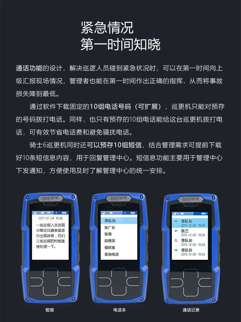 通話功能的設計,解決巡檢人員碰到緊急狀況時,可以在第一時間向上級匯報現場情況,管理者也能在第一時間作出正確的指揮,從而將事故損失降到最低。