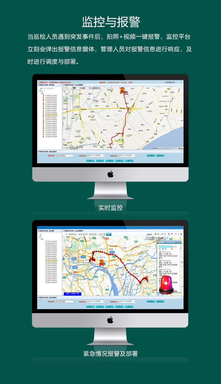 一鍵報警功能和實時監控功能可以對巡查人員進