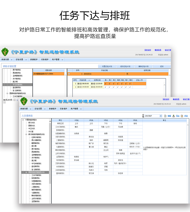 對護(hù)路日常工作的智能排班和高效管理,確保護(hù)路工作的規(guī)范化,提高護(hù)路巡查質(zhì)量。